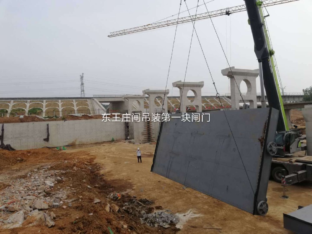6月1日下午,棗莊市水利開發(fā)有限公司承建的棗莊市市中區(qū)東王莊閘除險(xiǎn)加固工程安全順利地完成閘門的全部吊裝任務(wù)。