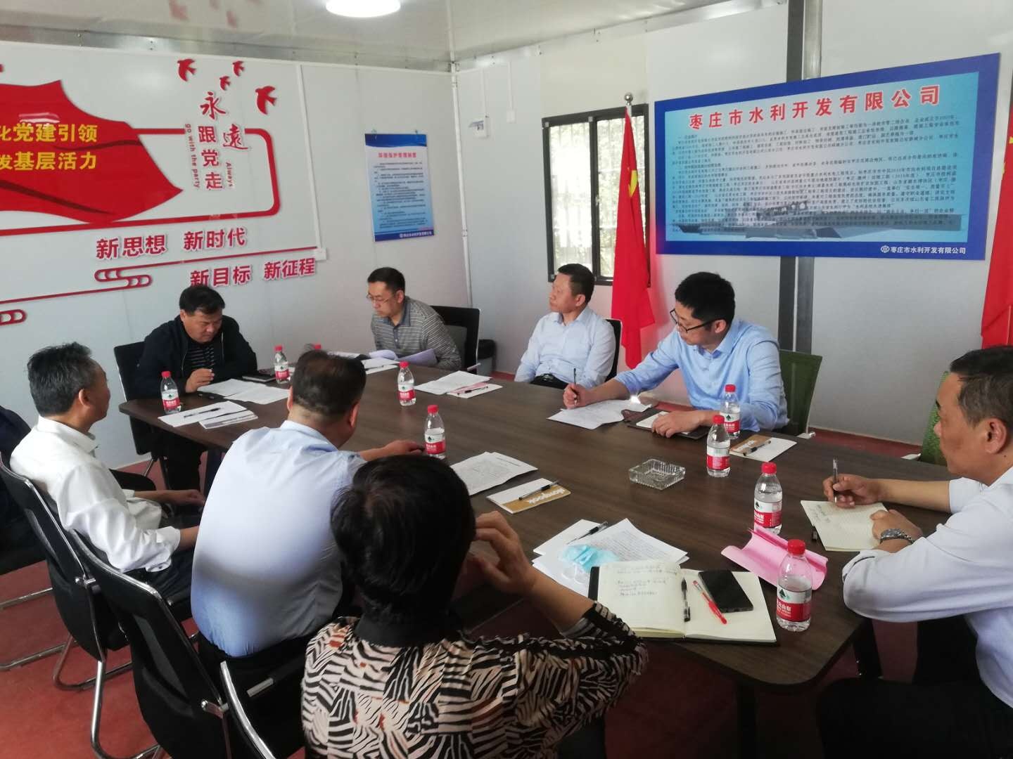 王祖利副廳長一行在工地現(xiàn)場查看了工程進(jìn)度,質(zhì)量和安全生產(chǎn)情況,并在項(xiàng)目會(huì)議室組織召開座談會(huì),聽取了工程進(jìn)展情況匯報(bào),對我公司施工管理到位、施工質(zhì)量、安全生產(chǎn)、施工進(jìn)度情況及汛前完成工程建設(shè)的施工計(jì)劃給予了高度贊賞和評價(jià)。同時(shí)強(qiáng)調(diào),汛期將至,建設(shè)任務(wù)十分緊迫,要搶抓晴好天氣,進(jìn)一步采取措施,優(yōu)化施工方案,細(xì)化防控工作措施,在抓好施工質(zhì)量和安全的前提下,倒排工期、掛圖作戰(zhàn),做到保安全、控質(zhì)量、促進(jìn)度三者有機(jī)結(jié)合,科學(xué)組織施工,切實(shí)加快工程進(jìn)度,力爭工程及早建成、發(fā)揮應(yīng)有作用。