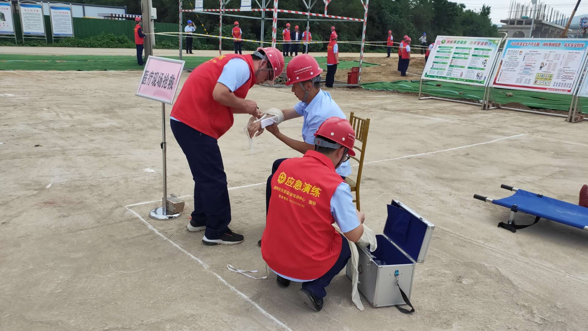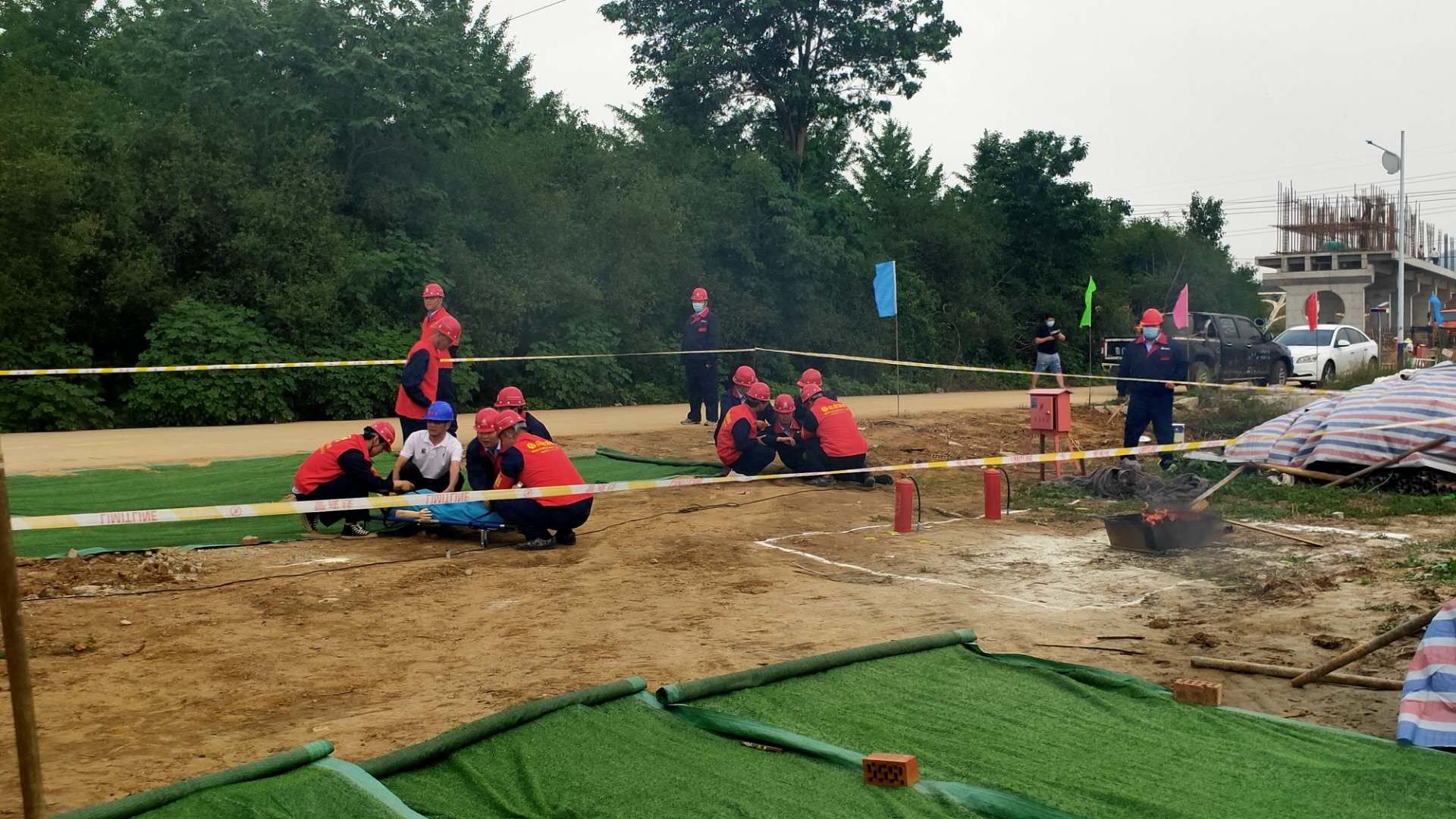 本次演練模擬事故情形為:市中區(qū)東王莊閘除險(xiǎn)加固工程施工現(xiàn)場(chǎng),模板加工廠電線線路短路引發(fā)火災(zāi),員工在實(shí)施初級(jí)滅火救援中1人不慎觸電,1人在施救時(shí)受到機(jī)械傷害,公司啟動(dòng)《棗莊市水利開(kāi)發(fā)有限公司生產(chǎn)安全事故綜合應(yīng)急預(yù)案》一級(jí)響應(yīng)。成立現(xiàn)場(chǎng)指揮部,指揮各救援職能組應(yīng)急救援隊(duì)伍進(jìn)行快速、準(zhǔn)確的滅火救援,對(duì)傷者進(jìn)行CPR及止血、包扎、固定、搬運(yùn)等救護(hù)技能操作,在各救援職能組的全力配合下,圓滿(mǎn)完成此次應(yīng)急救援任務(wù)。